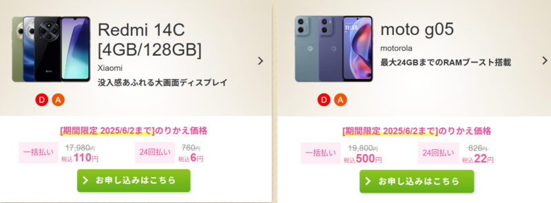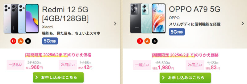 ▶スマホ大特価セール・のりかえ価格