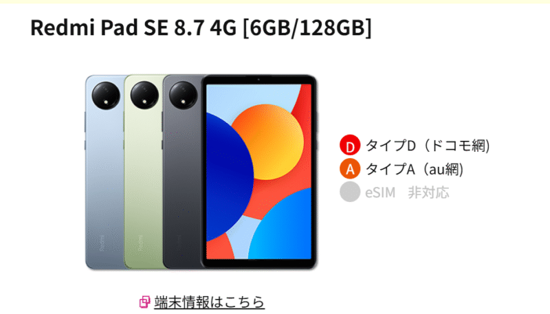 だけど今回端末が欲しくてこのタブレットを選んだ場合、トクトクキャンペーン(通信とか通話の割引)が適用されるのはeSIM。