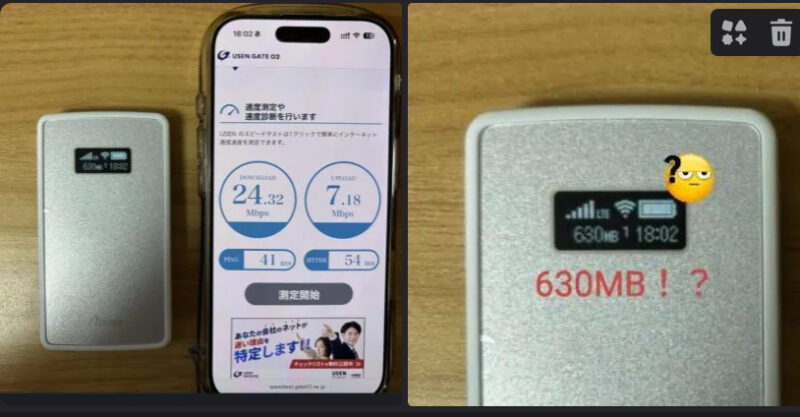 ルーター自体は660MBになっているが、スマホで計測してみると実測値24MB