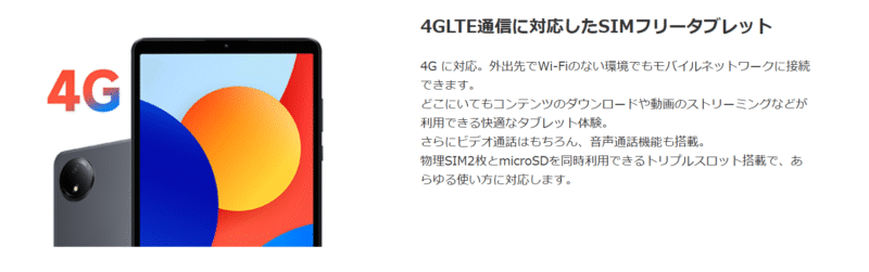 このタブレットは、物理SIMカードが2枚はいり、更にmicroSDカードも入るため、最大2TBまでのストレージ拡張が可能です。